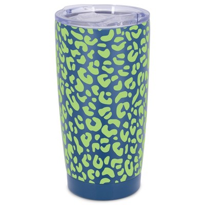 Elanze Designs 20 oz Stainless Steel On the Go Insulated Travel Tumbler With Push Top Lid, Lime Green Cheetah Leopard Print Blue