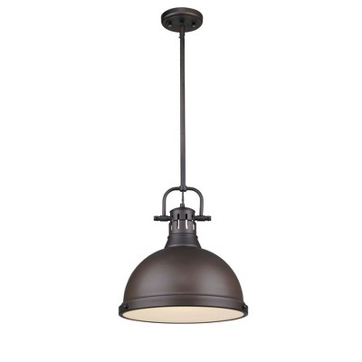Farmhouse Industrial Iron LED Pendant Black/Brass Gold - JONATHAN Y