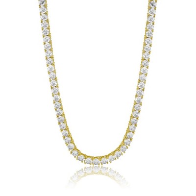 Simona Round 4mm CZ Tennis Necklace - Gold Plated - Available Colors: Yellow, Silver