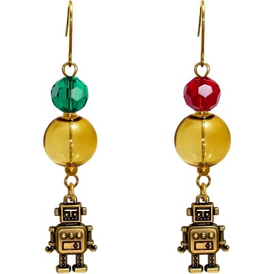Steampunk Glass Ball Earrings - Asymmetric Robot Dangle Mismatched Design for Women