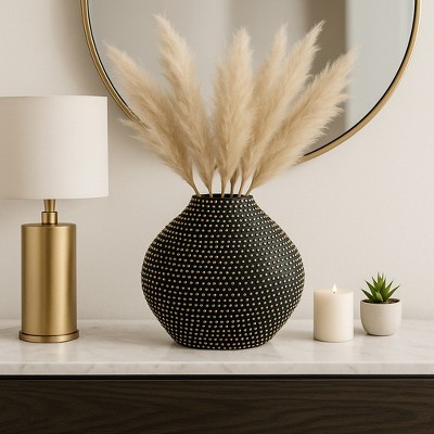 Elegant Beaded Ceramic Table Vase for Entryway Accent - Modern Flower Vase Decor for Shelves and Tabletops - Black, 16"
