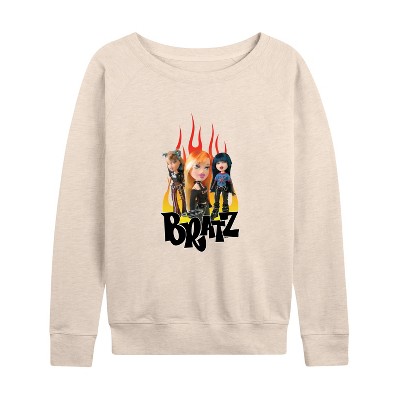 Women's - Bratz - Original Dolls Cartoon Drawing Lightweight French Terry Wide Neck Long Sleeve Graphic Shirt