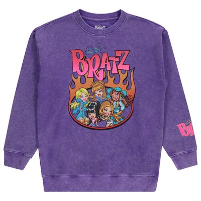 Ladies Bratz Dolls Tiedye Sweatshirt - Yasmin, Cloe, Jade, and Sasha - Bratz 1990's Vintage Throwback Mineral Wash Crewneck
