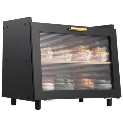 EcoSummer Double Layer Bamboo Bread Box with Acrylic Door, Countertop Bread Container, Black.