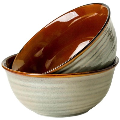 Aoibox 2 Pack 60oz Deep Ceramic Serving Bowls 8.4in Large Mixing Bowls for Salad Pasta Soup Popcorn Microwave Dishwasher Safe Brown