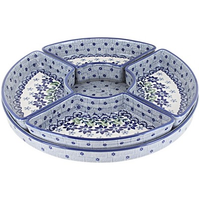 Gibson Elite Gracious Dinning 6 Piece Stoneware Sectional Serving Set with Revolving Wood Tray