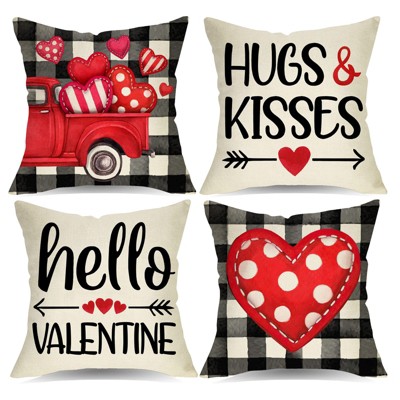 4 pack Valentine's Day Love Heart Throw Pillow Cover, 18 x 18 Inch Envelope White Anniversary