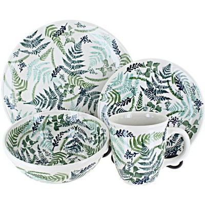 16pc Stoneware Tropical Breeze Dinnerware Set White- Elama: Floral Pattern, Service for 4, Microwave & Dishwasher Safe