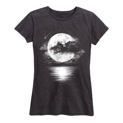Women's - Instant Message - Cloudy Moon Shooting Stars Short Sleeve Graphic T-Shirt