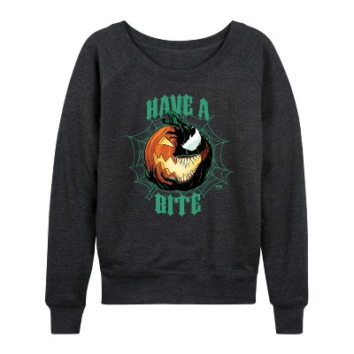 Women's - Marvel - Have A Bite Lightweight French Terry Wide Neck Long Sleeve Graphic Shirt