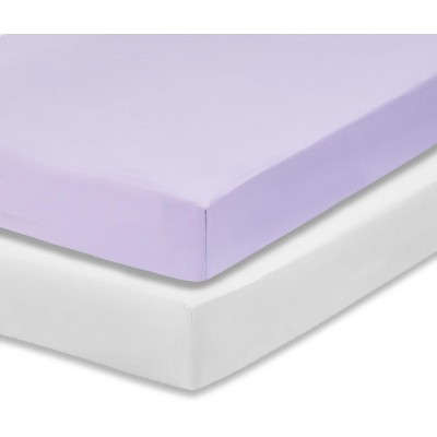 Everyday Kids 2-Pack Crib Sheets, Soft Microfiber, White & Lavender, Fits 28x52in Standard Mattress, Breathable & Machine Washable Baby Nursery Sheets