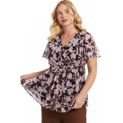 June + Vie by Roaman's Faux Wrap Fit-And-Flare Top