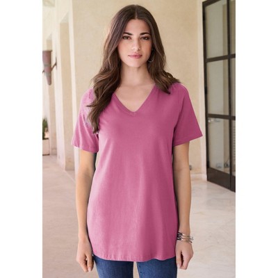 Woman Within Perfect Short-Sleeve Shirred V-Neck Tunic