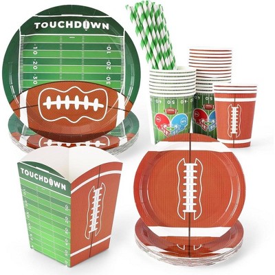 WhizMax 125 Pcs Football Plates and Napkins Set Serve 25, Football Disposable Tableware Set - Plates, Cups, Snack Bowls, Straws