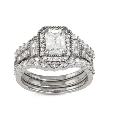 Lyona Bridal Set Womens Cz Sterling Silver Engagement Ring Ginger Lyne Collection