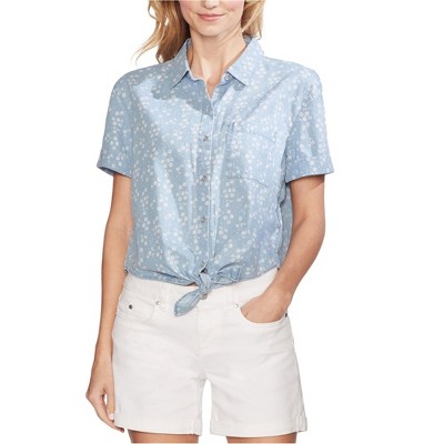Vince Camuto Womens Drawstring Shoulder Button Down Blouse
