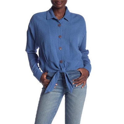 Sanctuary Clothing Womens Hayley Tie Front Button Down Blouse