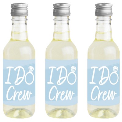 Big Dot of Happiness Dusty Blue Elegantly Simple - Mini Wine & Champagne Bottle Label Stickers - Wedding or Bridal Shower Guest Party Favor Gift 16 Ct