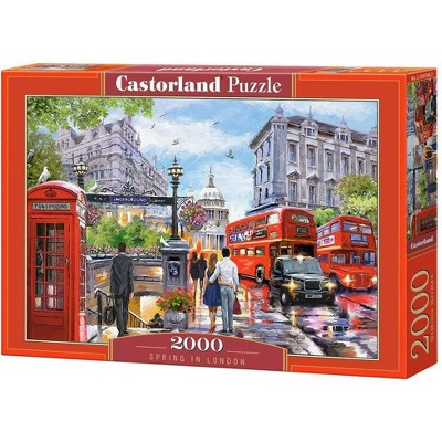 2000 Piece Jigsaw Puzzle, Spring in London, City center, Red Bus, UK, Great Britain, Puzzle of England, Adult Puzzles, Castorland C-200788-2