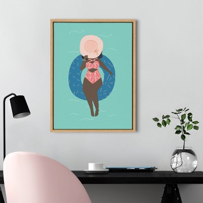 18" x 24" Sylvie by the Pool Framed Canvas by Queenbe Monyei Natural - Kate & Laurel All Things Decor