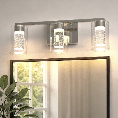 YANSUN 3-Light Nickel LED Vanity Light Fixture with Clear Glass Shade and LED Crystal Bulbs 3000-6000K, Dimmable Color