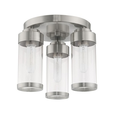 Progress Lighting Atwell 3-Light Flush Mount Ceiling Light, Brushed Nickel, Clear Glass