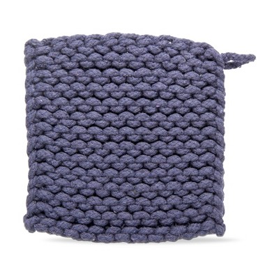 tagltd Midnight Blue Crocheted Cotton Trivet Potholder – 8"x8", Heat-Resistant with Hanging Loop, Machine Washable, Protect Hands and Surfaces