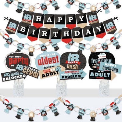 Big Dot of Happiness Boy 18th Birthday - Banner and Photo Booth Decorations - Eighteenth Birthday Party Supplies Kit - Doterrific Bundle