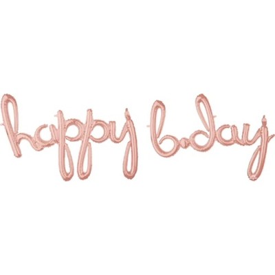 LOONBALLOON 76 Inch Happy BDay Rose Gold Air-Fill Script Phrase Balloon – Elegant Birthday Party Decoration