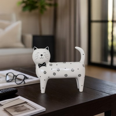 Modern Daisies Cat Figurine for Home Decor - Ceramic Ornaments for Bathroom, Office, Room and Living Room Accent