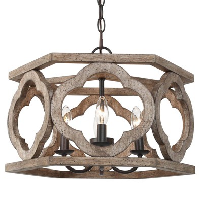 LNC Quaint 3-Lights Farmhouse Lantern Mini Chandelier,Brown/Gray,9in/12.5in