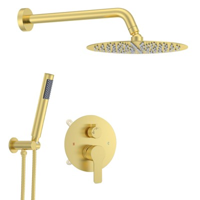 Itopfox 12 Inch Brushed Gold Shower System with High Pressure Rain Shower Head, Handheld Showerhead, and Wall Mounted Faucet Set