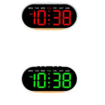 REGALWOVEN 2 Pcs Digital Battery Powered Big Numbers Display Oval Alarm Clock 5.4 x 2.6 x 2 Inches