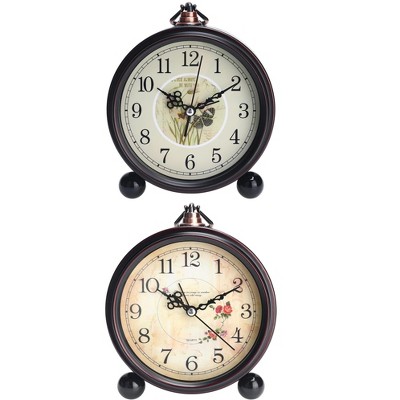 REGALWOVEN 2 Pcs Metal Battery Powered Silent Vintage Desk Clock 5.9 x 5.1 x 2 Inches