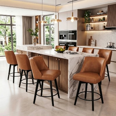 Okak Swivel Bar Stools Set of 2, Modern Counter Height Stools with Chestnut Brown Upholstery and Black Metal Base, Versatile Seating for Kitchen