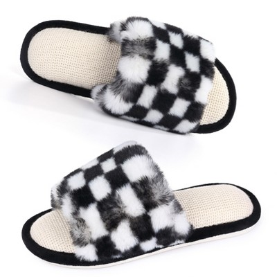 Women's Open Toe House Slippers Cross Band Fuzzy Indoor Slip On Bedroom Home Shoes