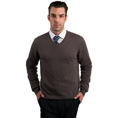JENNIE LIU Men's 100% Pure Cashmere Long Sleeve Pullover V Neck Sweater