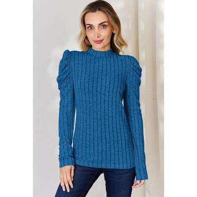 Hello Miz Women's Mock Neck Long Sleeeve Ribbed Maternity Top