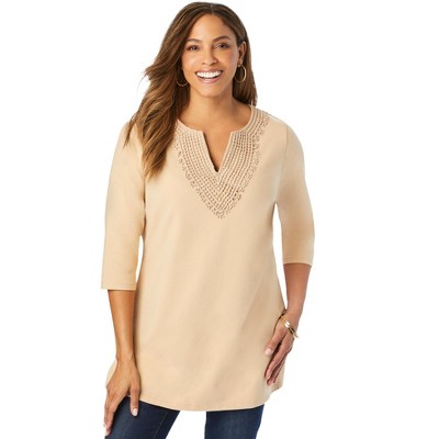 Woman Within Embroidered Knit Tunic
