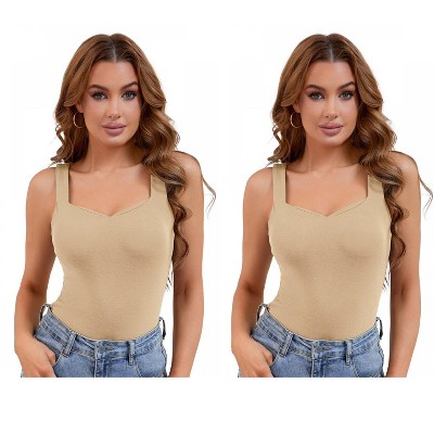 INSPIRE CHIC Women's Sweetheart Neck Undershirt Base Layer Tank Tops with Built in Bra