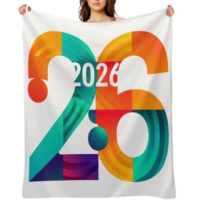 Soscooter 2026 Happy New Year Flannel Throw Blanket Colorful Geometric Number Pattern Modern Festive Cozy Blanket