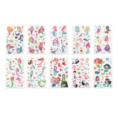 Unique Bargains Halloween Christmas Realistic Mermaid Temporary Tatto Blue Purple 10 Pcs