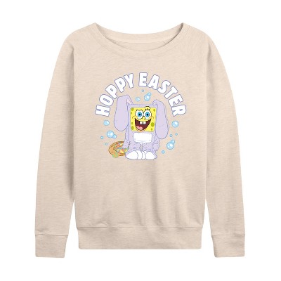 Women's - SpongeBob Squarepants - Hoppy Easter Lightweight French Terry Wide Neck Long Sleeve Graphic Shirt