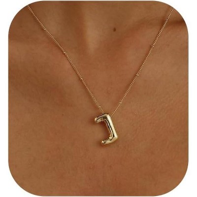Summit Adventure Bubble Gold Letter Necklace, 14k Gold Plated Balloon Initial Pendant, Dainty Chunky Name Necklace
