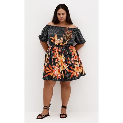 Women's Plus Size Island Breeze Placement Dress - black | CITY CHIC