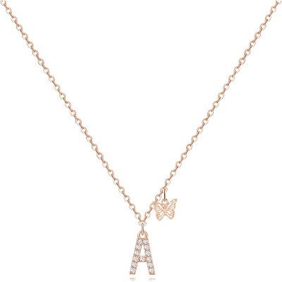 Custom Initial Necklace with Butterfly - 14K Gold Plated CZ Letter Pendant Dainty Gift for Her