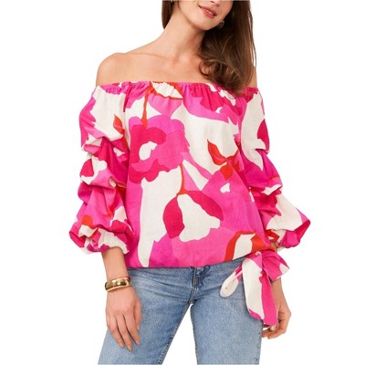 Vince Camuto Womens Printed Bubble Sleeve Floral Off the Shoulder Blouse