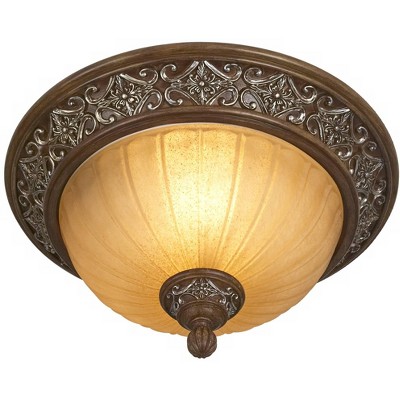 Possini Euro Design Moorcroft Rustic Farmhouse Ceiling Light Flush Mount Fixture 12 1/4" Wide Oil Rubbed Bronze Painted Wood for Bedroom Living Room