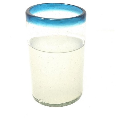 Dos Sueños Mexican Hand Blown Drinking Glasses - Aqua Rim - 14oz - Single Glass