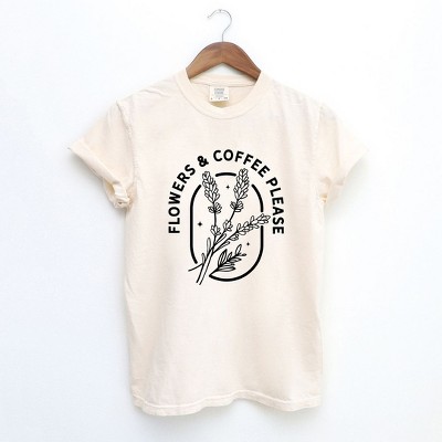 Simply Sage Market Women's Flowers and Coffee Please Short Sleeve Garment Dyed Tee